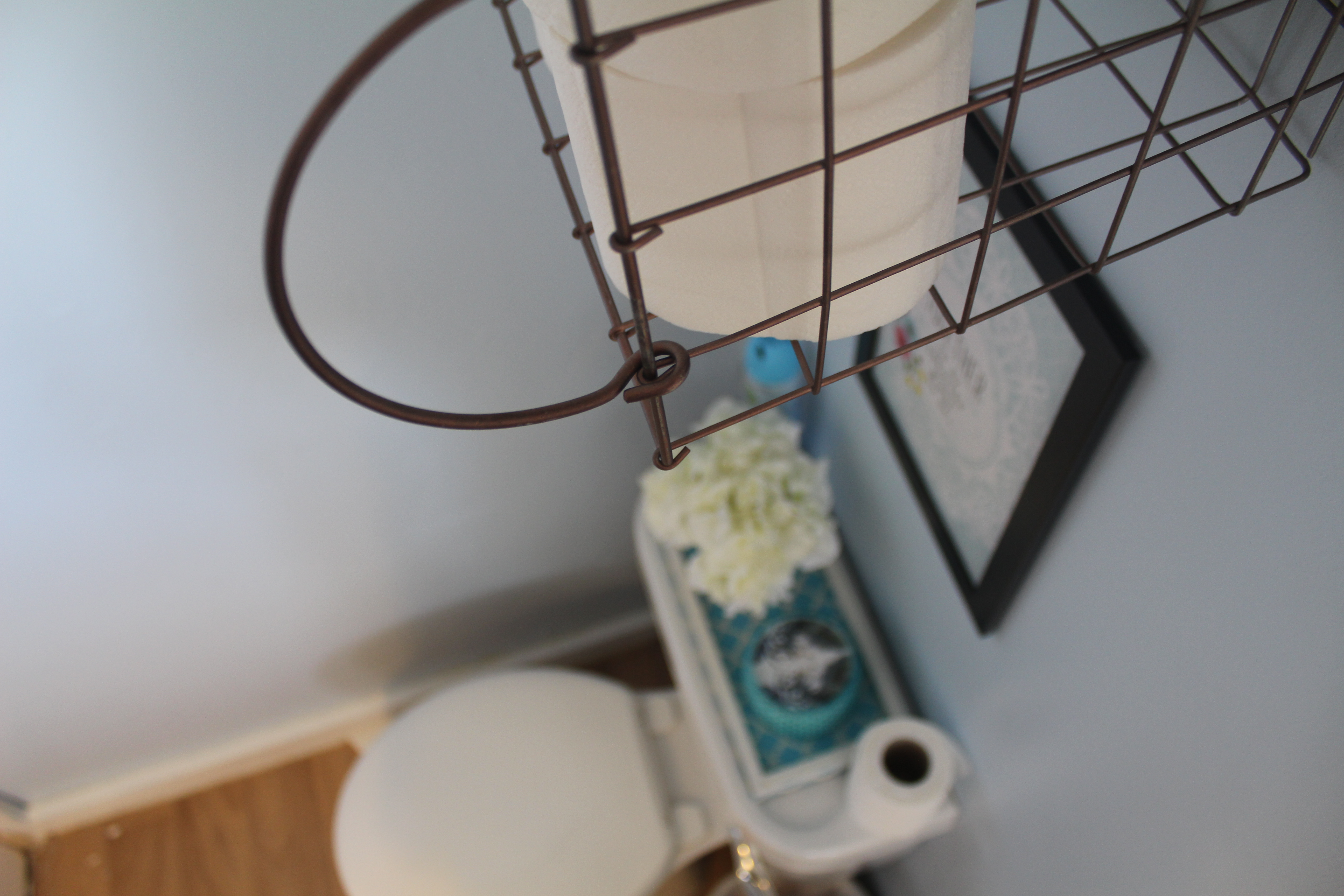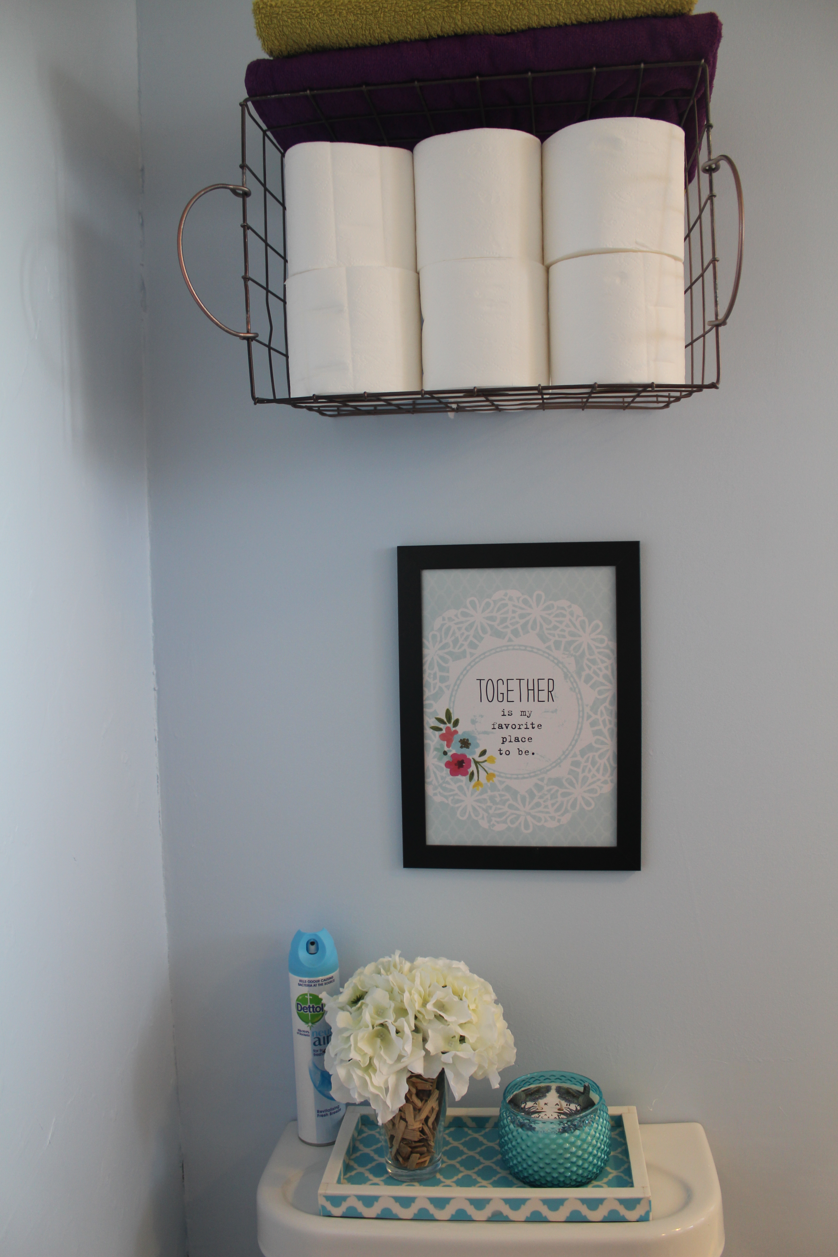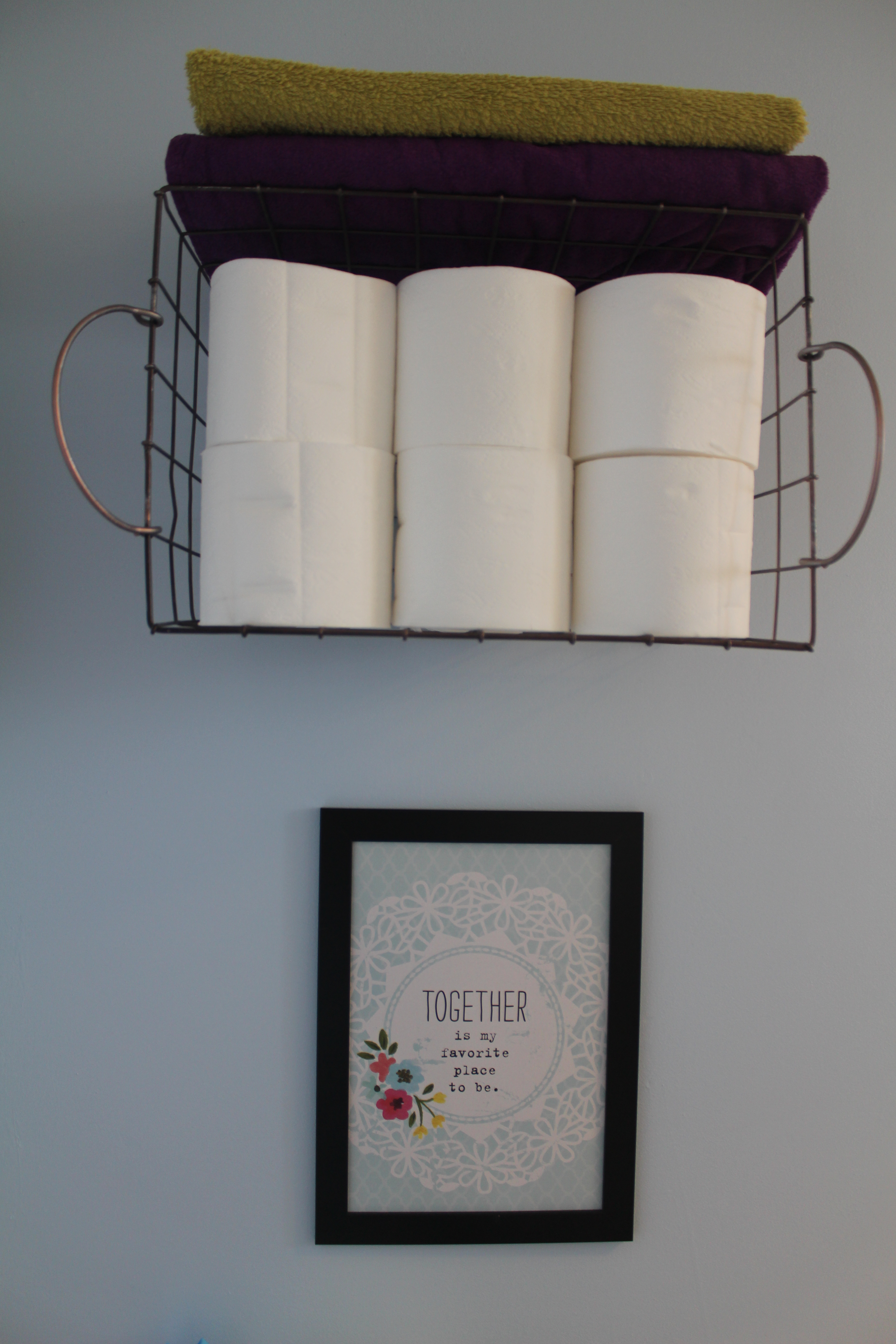 But one of my favorite creative ideas, that I found on Pinterest a while ago, is to use metal basket as wall shelf! I think it brings the raw element of nature, as well as serves a purpose. We use our basket shelf above the toilet to store away toilet paper rolls, and clean towels above it. The shelf is the first thing my guests see when they enter the bathroom and we got so many compliments on the idea!