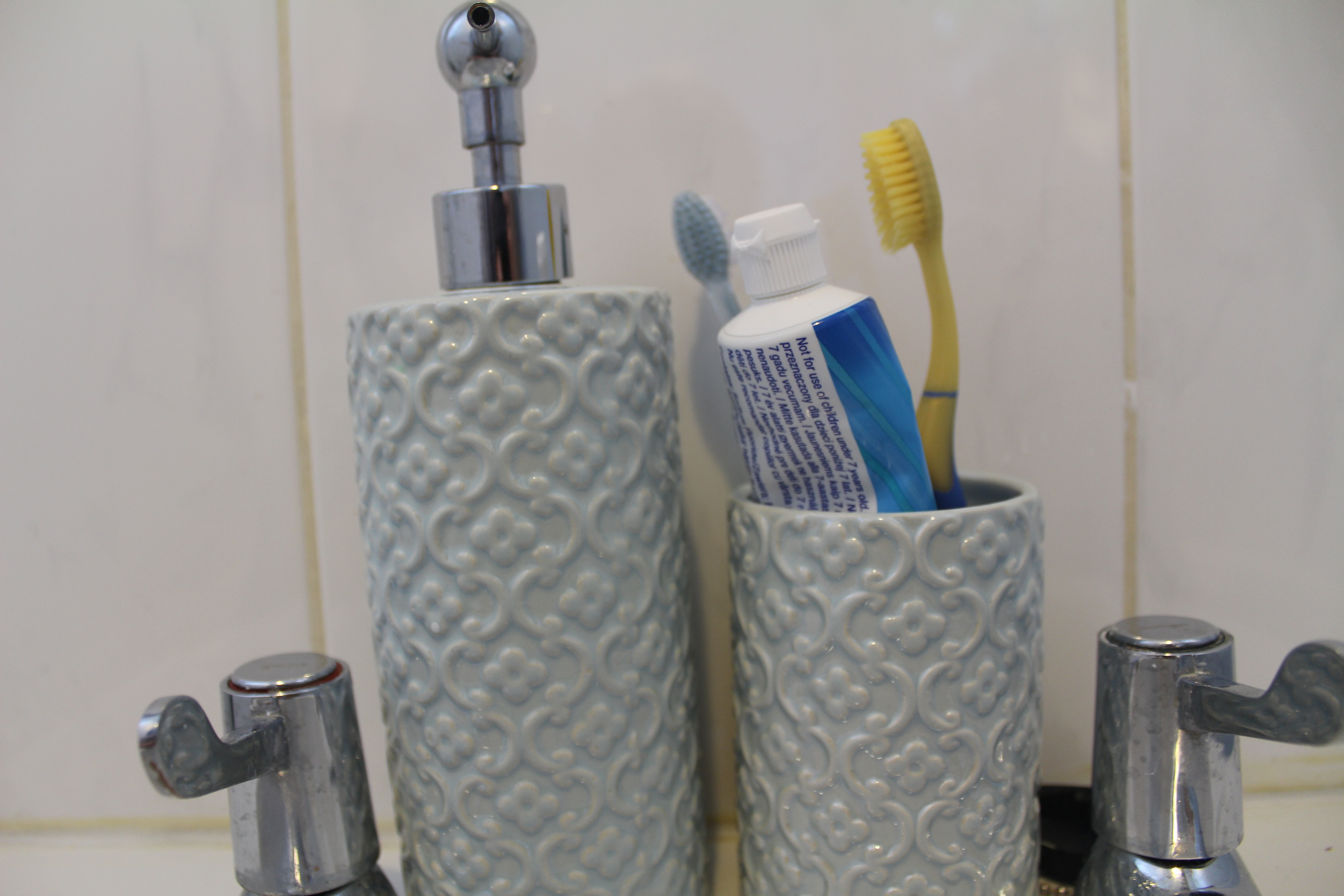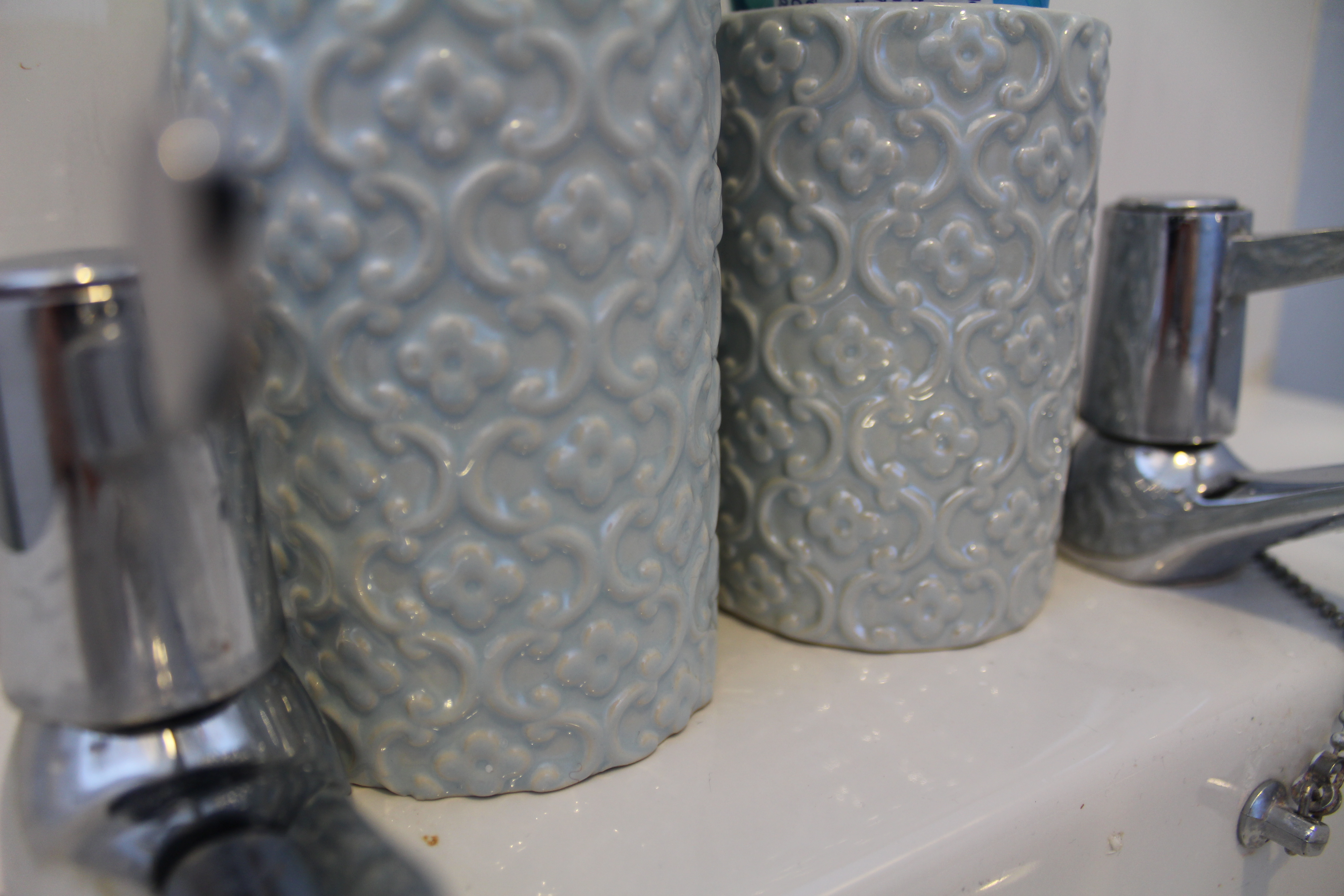 We have recently moved into a new property that required a lot of our time and creative effort. Definitely one of the most challenging areas in the whole flat was the bathroom. Not many of us are blessed with spacious, bright bathroom spaces with a lot of storage, – we have certainly not been blessed with one. Creating solutions for problems is what I do on a daily basis, whether it is at work, home, or personal life, therefore I was happy to take on a challenge to make our bathroom into a peaceful, bright, and organised room. We went for nature inspired classic white and blue color scheme with the elements of raw metal, natural wood, and white flowers.