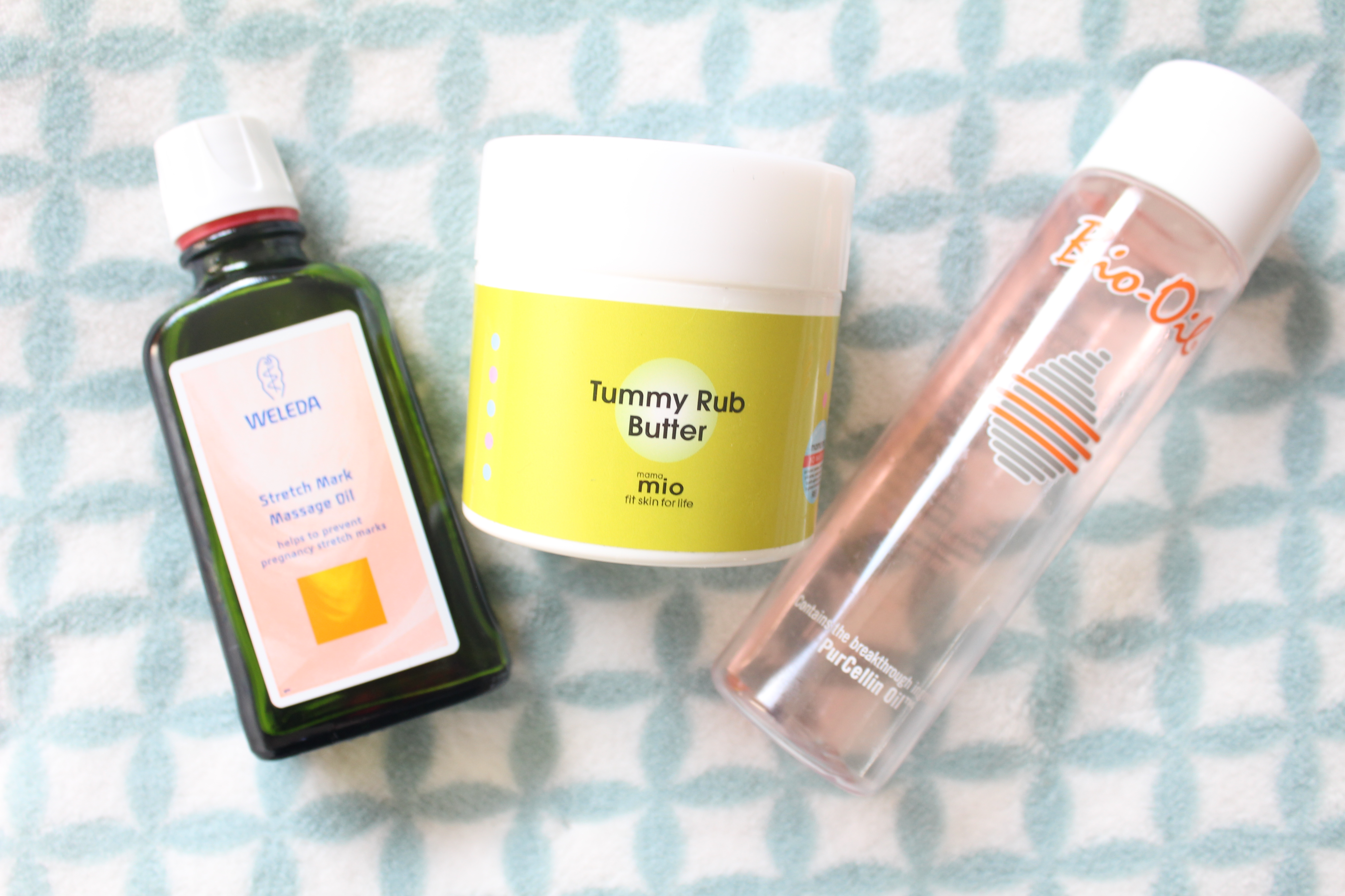 Stretch Mark Oils/ Creams. Body moisturizing and care has never been as important as in pregnancy. Our bodies stretch and put on weight not only around the waist… Breasts, legs, arms stretch too! If skin stretches too quickly and is not elastic enough it may cause stretch mark scars. There is not much we can do to avoid them as genetics play a big role as well, however we can try to do our best to prevent them by using stretch mark oils and creams few times a day. The ones I use and like are: Mama Mio Stretch Mark Butter; Bio Oil; and Weleda Stretch Mark Oil.