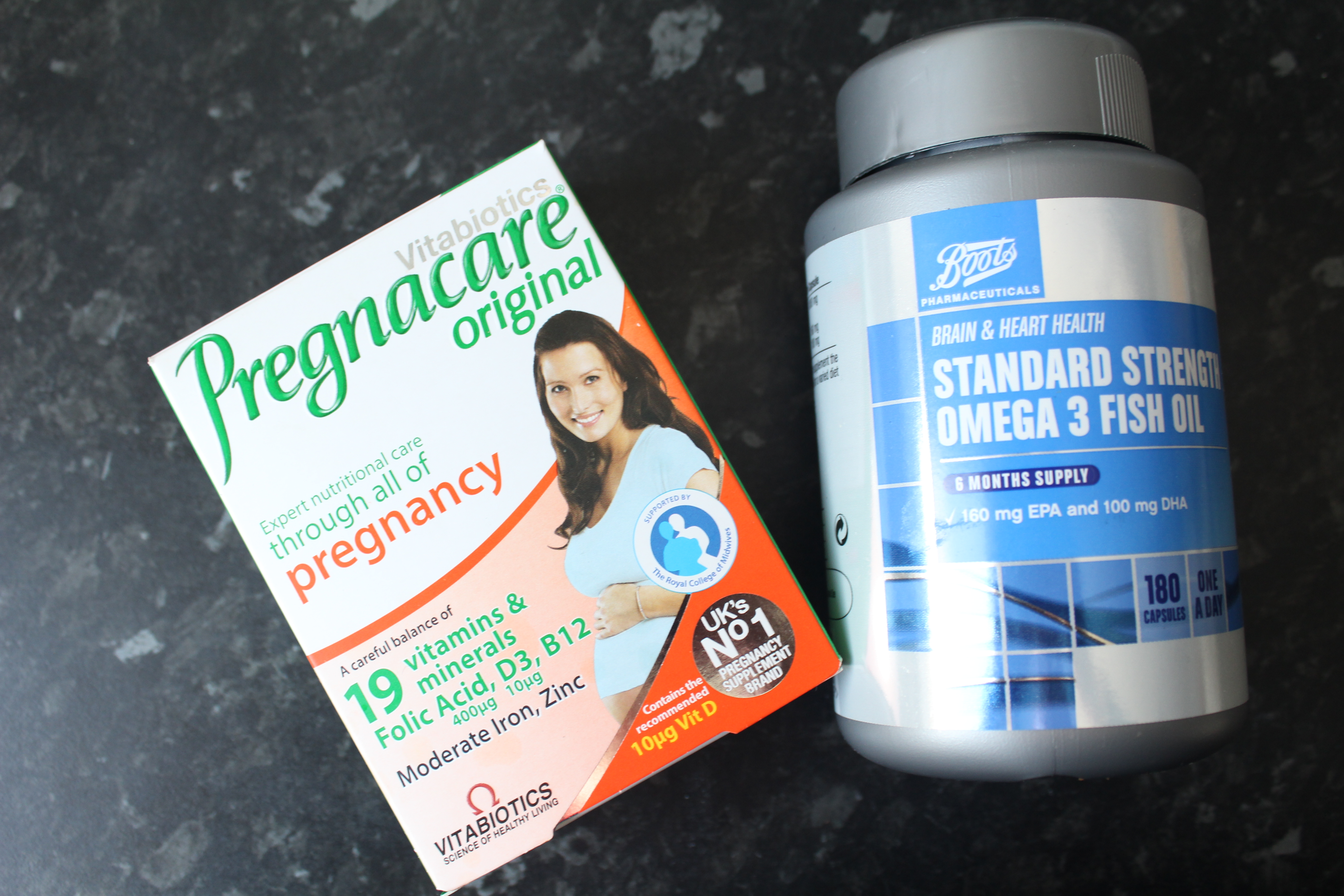 Vitamins. Our bodes do not get all the essential vitamins through food, but during pregnancy body requires even higher levels of some of the vitamins. In order to be able to provide it medical doctors recommend pregnant women to use pregnancy multi-vitamins. I use Pregnacare Original vitamins as well as Omega 3, witch is essential for baby brain development.